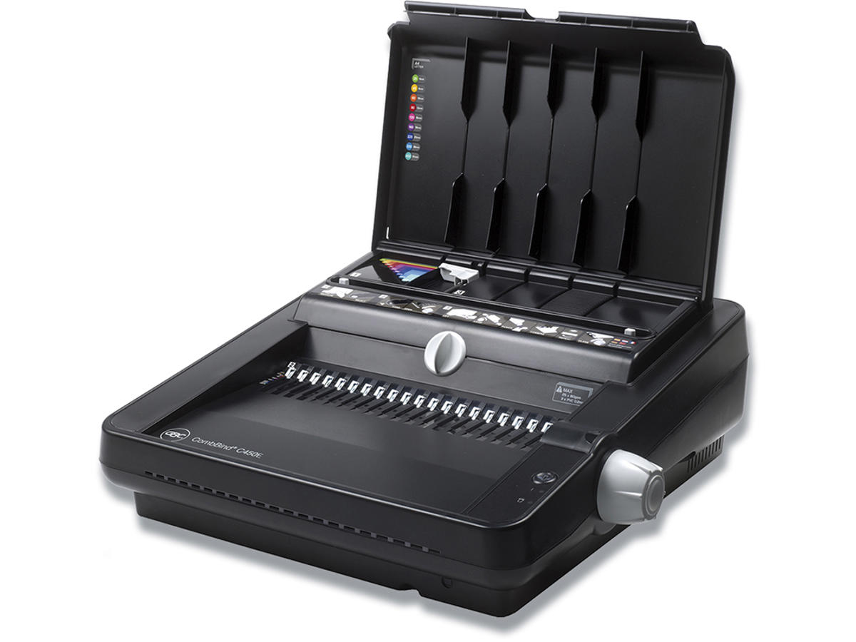 Indbinding bliver ikke nemmere! CombBind C450E er ideel til gennemsnitskontoret med mellemstore indbindingsbehov. Papirhulning foregår elektronisk, hvilket gør processen endnu nemmere. Er udstyret med funktioner såsom automatisk centrering og en papirdeler.Du kan også vælge farvekodede ProCombs til maksimal produktivitet. C450E kombinerer en hulningskapacitet på op til 25 stk. 80 g ark med en indbindingskapacitet på op til 450 ark, indbinder A3 tværformat (den korte side), A4 eller A5 formater.