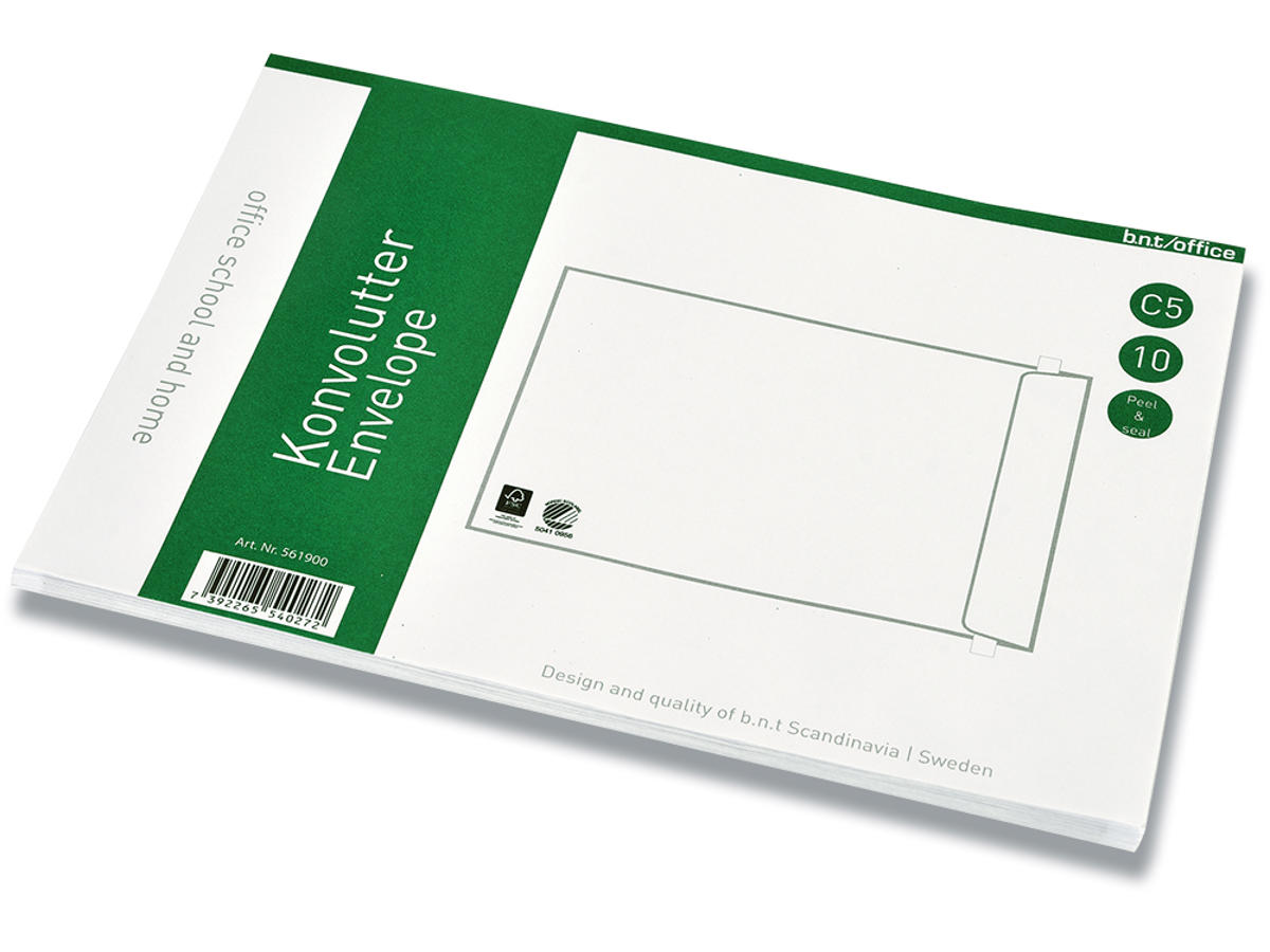 Svanemærkede hvide kuverter med peel & seal stripe og lukning på kortsiden - 10 stk