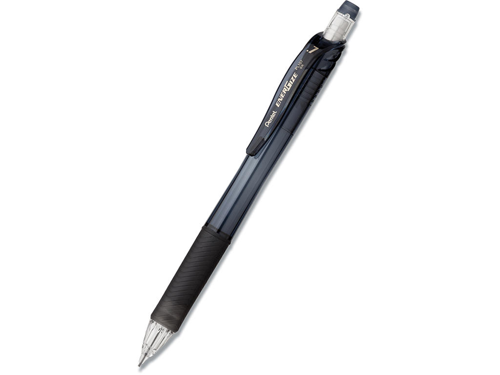 Pentels Energize stiftblyant har et moderne og stilrent design. Den har et viskelæder i toppen, et behageligt ergonomisk gummigreb og en metalclip i siden, så du kan sætte den fast i lommen eller din papirstak.