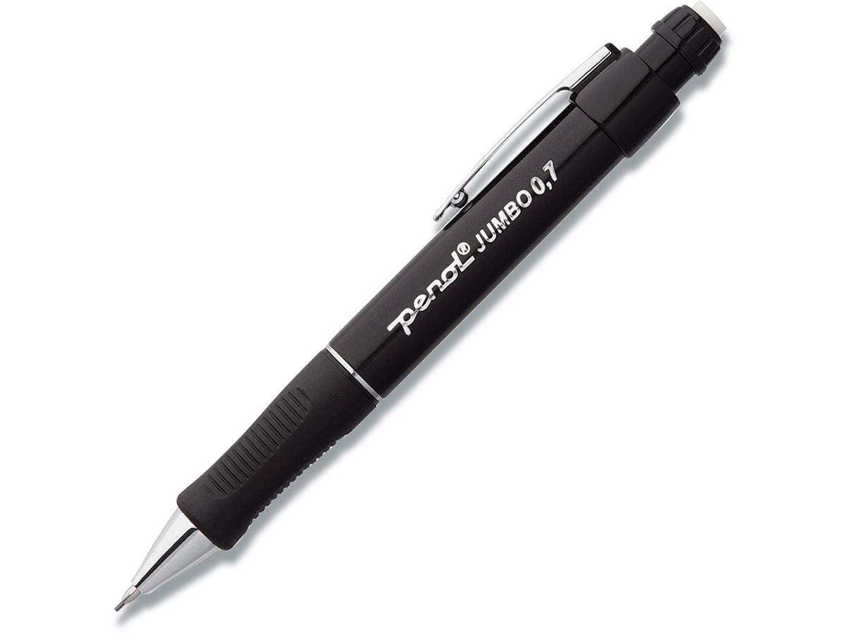Penol Jumbo pencil med trykmekanisme har et blødt og ergonomisk gummigreb og et langt skrue-viskelæder i toppen. Den praktiske clips er af metal og giver sammen med pennens blanke sorte farve et enkelt og klassisk udtryk. En kraftig stiftblyant med ergonomisk gummigreb og viskelæder.