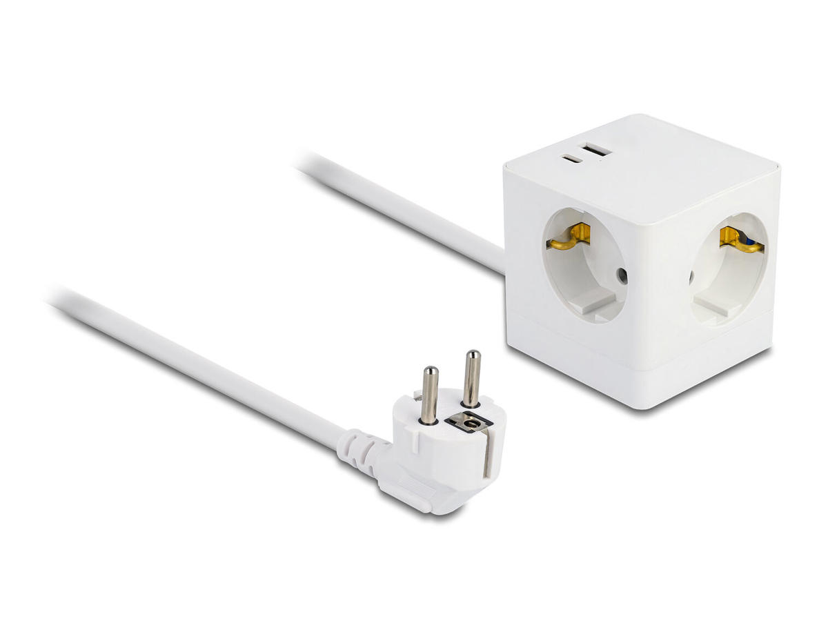 DeLOCK 11502. Kabellængde: 1,5 m, Understøttet placering: Indendørs, AC stikkontakt typer: Type F. AC udgange, antal: 3 AC stikkontakt(er). Vekselstrømsindgangsspænding: 100 - 240 V, Vekselstrømsindgangsfrekvens: 50 - 60 Hz, Maksimal indgangseffekt: 3680 W. Bredde: 66 mm, Dybde: 66 mm, Højde: 87 mm. Antal produkter inkluderet: 1 stk, Pakketype: Kasse