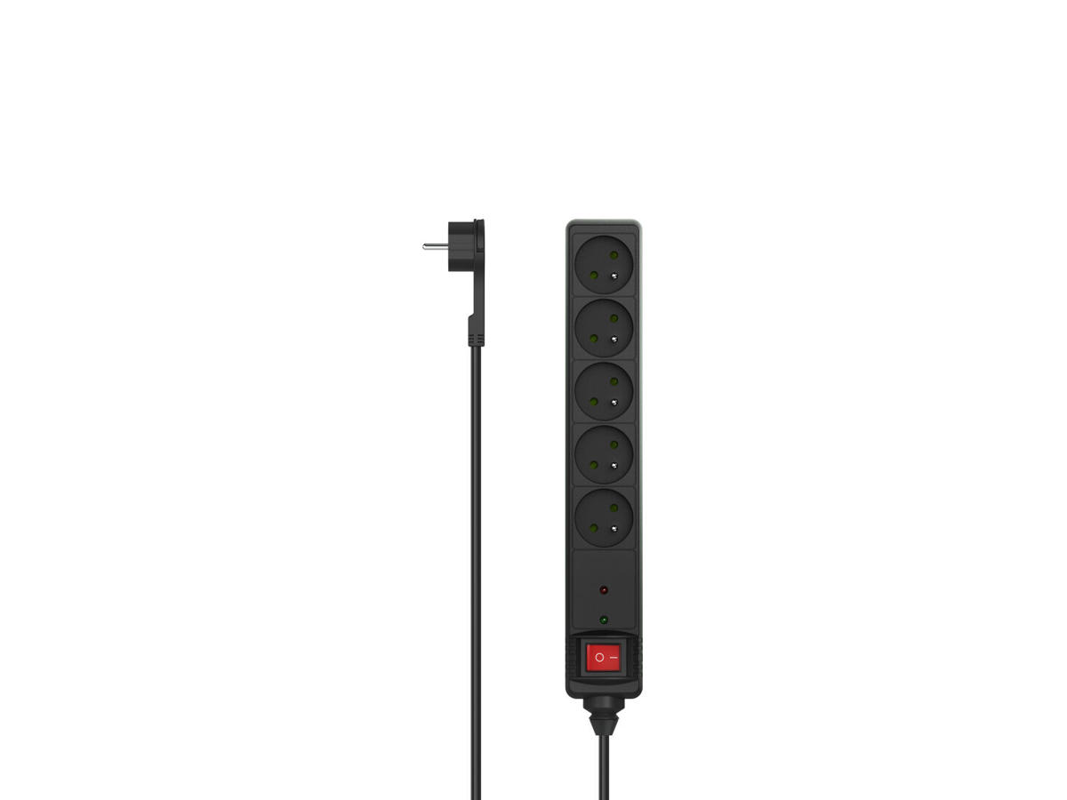 Hama P2223771. Kabellængde: 1,4 m, Understøttet placering: Indendørs, Netstik formfaktor: Vinklet. AC udgange, antal: 5 AC stikkontakt(er). Vekselstrømsindgangsspænding: 250 V, Strømbeskyttelsesfunktioner: Højspænding, Beskyttelse mod overspænding. Antal produkter inkluderet: 1 stk