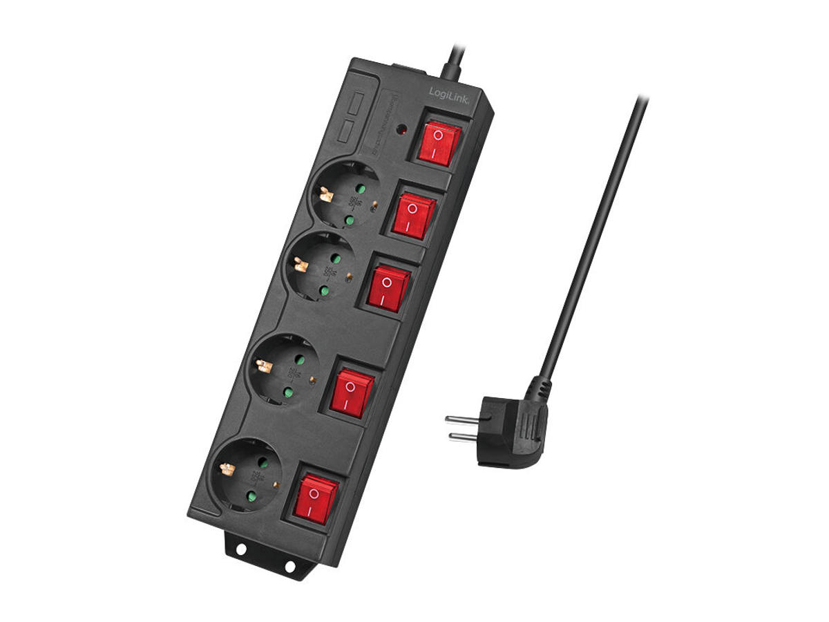 LogiLink LPS251. Kabellængde: 1,5 m, Understøttet placering: Indendørs, AC stikkontakt typer: Type F. AC udgange, antal: 4 AC stikkontakt(er). Vekselstrømsindgangsspænding: 250 V, Vekselstrømsindgangsfrekvens: 50 Hz, Maksimal indgangseffekt: 3680 W. Bredde: 80 mm, Dybde: 300 mm, Højde: 40 mm. Antal produkter inkluderet: 1 stk, Pakkebredde: 320 mm, Pakkedybde: 95 mm