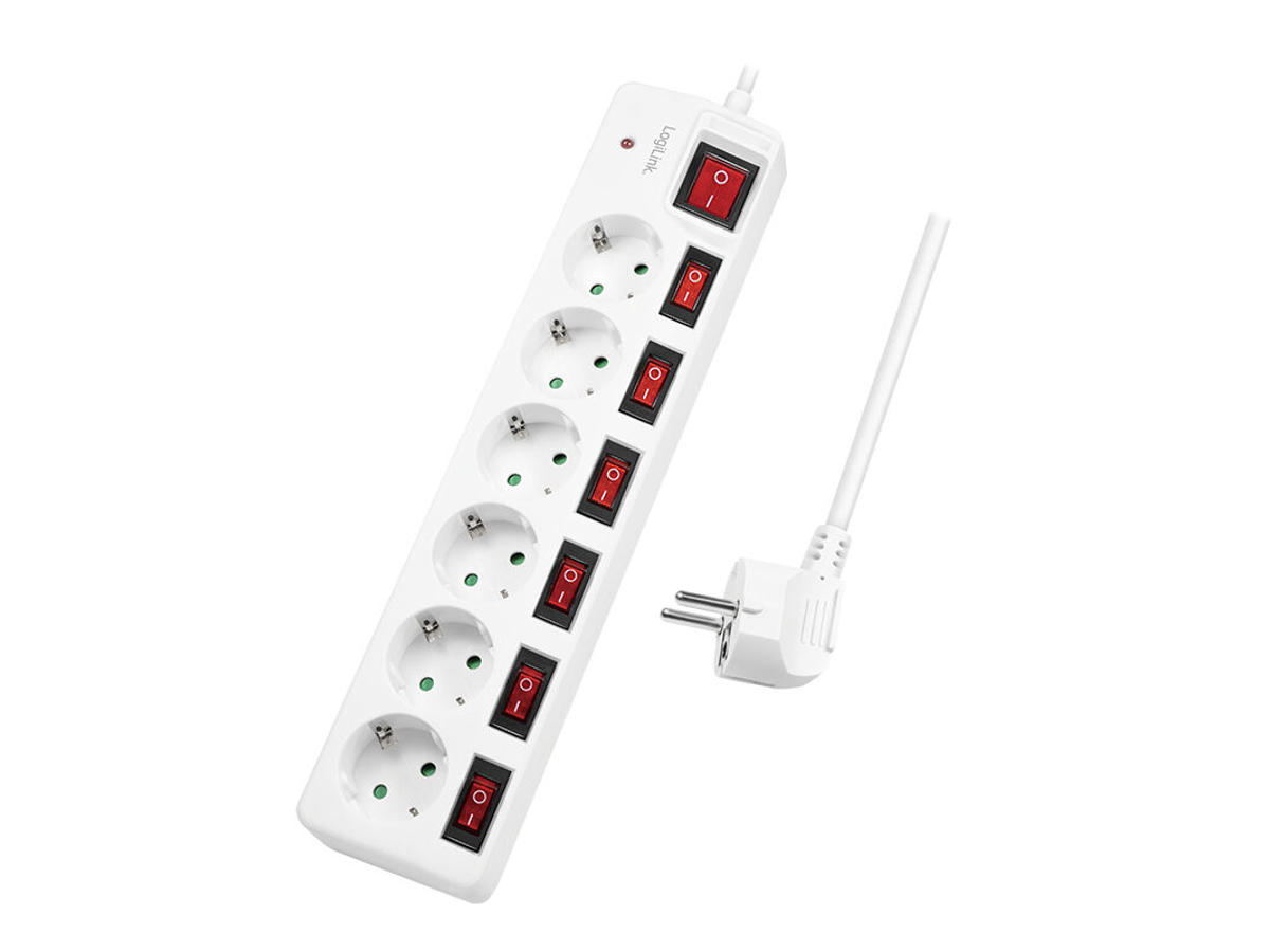 LogiLink LPS250. Kabellængde: 1,5 m, Understøttet placering: Indendørs, AC stikkontakt typer: Type F. AC udgange, antal: 6 AC stikkontakt(er). Vekselstrømsindgangsspænding: 250 V, Vekselstrømsindgangsfrekvens: 50 Hz, Maksimal indgangseffekt: 3680 W. Bredde: 70 mm, Dybde: 320 mm, Højde: 40 mm. Antal produkter inkluderet: 1 stk, Pakkebredde: 355 mm, Pakkedybde: 130 mm