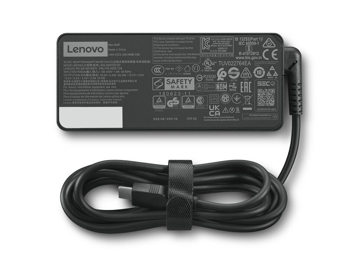 Lenovo GX20P92521. Formål: Laptop, Strømforsyningstype: Indendørs, Indgangsspænding: 100 - 240 V. Produktfarve: Sort. Certificering: IECEE CB cULus, FCC, DoE cULus, ICES-003 NOM, CONUEE CE EAC Nemko GS Ukrtest KEBS KUCAS SIRIM PCS.... Antal pr. pakke: 1 stk, Kabler inkluderet: USB Type-C
