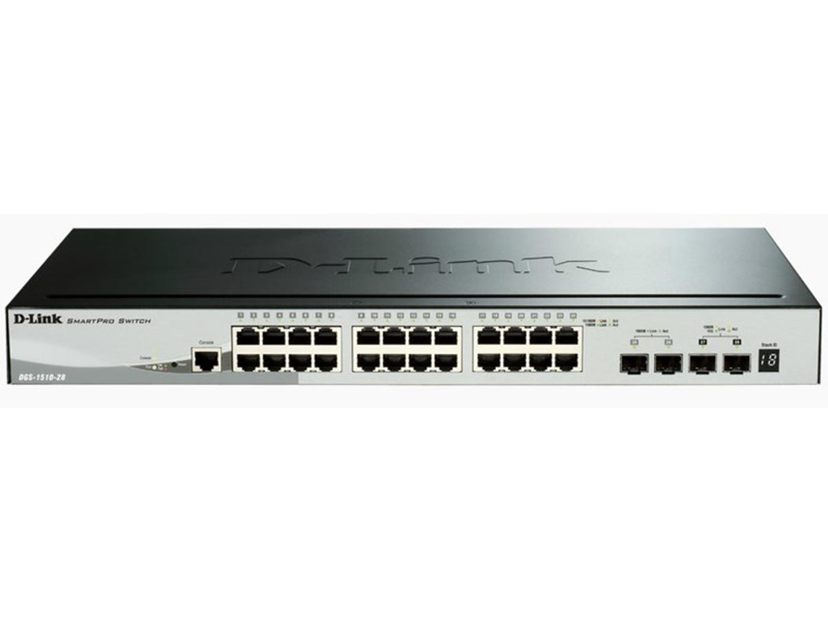 - DGS-1510-28X: 28-Port Gigabit Stackable Smart Managed Switch including 4 10G SFP+ (smart fans)