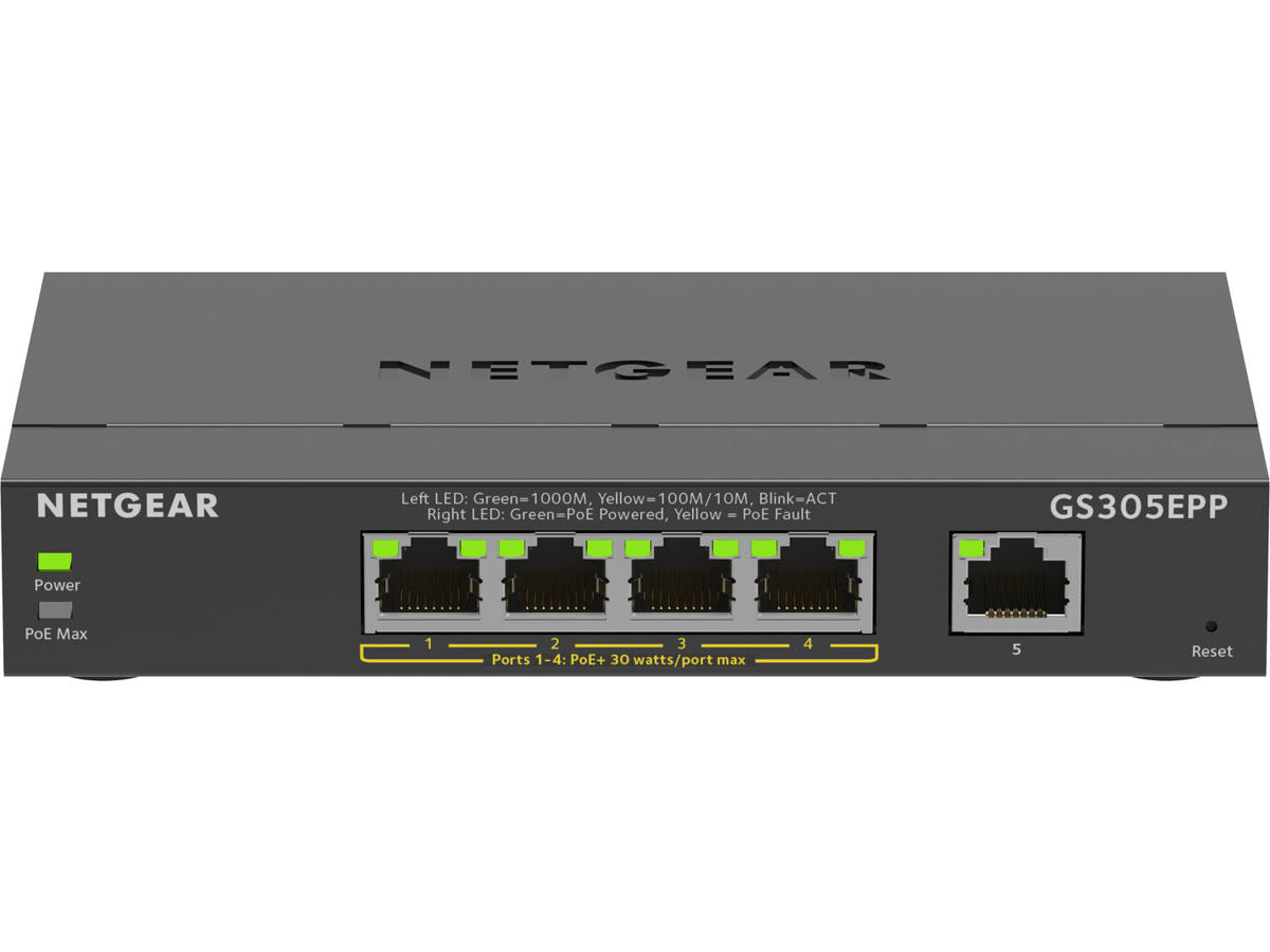 NETGEAR 5-Port Gigabit Ethernet High-Power PoE+ Plus Switch (GS305EPP) Administreret L2/L3 Gigabit Ethernet (10/100/1000) Strøm over Ethernet (PoE) Sort