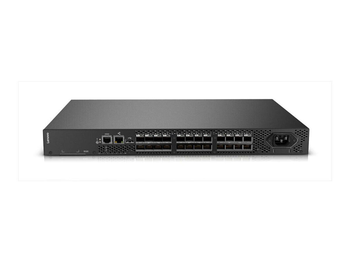 The B300 supports storage arrays from Lenovo Storage for analytics and online transactions. The B300 is available in a standard 8-port configuration (upgradeable to 24 ports), which includes the 8Gbps optics. It is an entry SAN 1U switch for small storage networks.