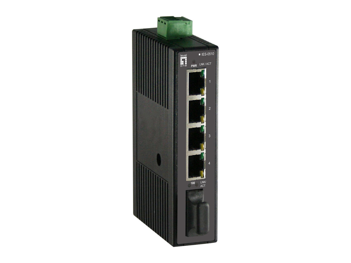 LevelOne IES-0510 Industry Ethernet Switch provides 4 ports of 10/100Base-TX Ethernet plus 1 port 100FX Multimode SC fiber to enable high speed network at mission-critical environment. This device is designed to be mounted on an industry standard DIN-rail, plus the clearly visible status LEDs provide simple monitoring of port link activity.