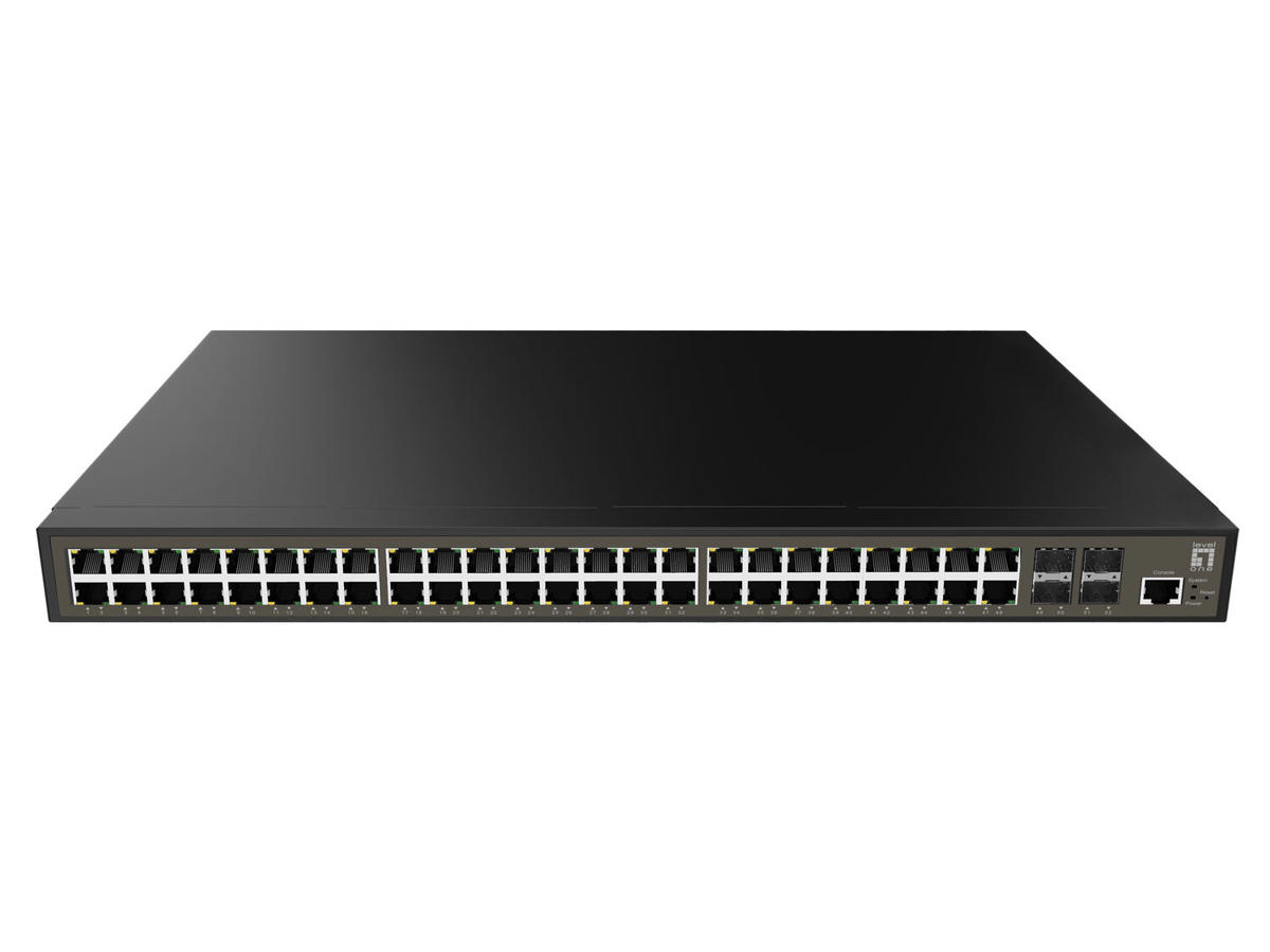 The LevelOne GEL-5271 is an intelligent 52-Port L2 plus managed gigabit switch with 48 RJ45 ports and 4 SFP fiber slots, designed for enterprise or large workgroups connectivity applications with the non-blocking, wire-speed switching performance and advanced networking management functions.