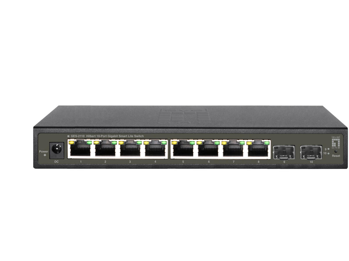 The LevelOne GES-2110 Hilbert gigabit smart lite switch is a next-generation Ethernet Switch offering powerful better functionality and usability that delivers the cost-effectively business and transports Ethernet services via fiber or copper connections. GES-2110 delivers 8 (10M/100M/1G) RJ45 ports and 2 Gigabit SFP ports. can be matched with the latest LevelOne IP Locator, the software is the easiest to use switch discovery tool, it can search all Hilbert series switches, instantly know the forgotten IP and other info. Compatible with mainstream Windows and Mac operating systems.