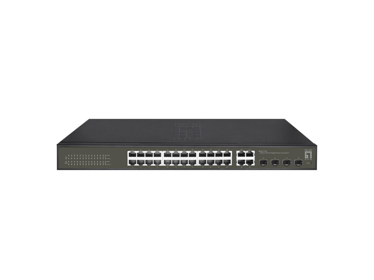 The LevelOne GES-2128 Hilbert gigabit smart lite switch is a next-generation Ethernet Switch offering powerful better functionality and usability that delivers the cost-effectively business and transports Ethernet services via fiber or copper connections. GES-2128 delivers 24 (10M/100M/1G) RJ45 ports and 4 Combo GbE RJ45/SFP ports. can be matched with the latest LevelOne IP Locator, the software is the easiest to use switch discovery tool, it can search all Hilbert series switches, instantly know the forgotten IP and other info. Compatible with mainstream Windows and Mac operating systems.