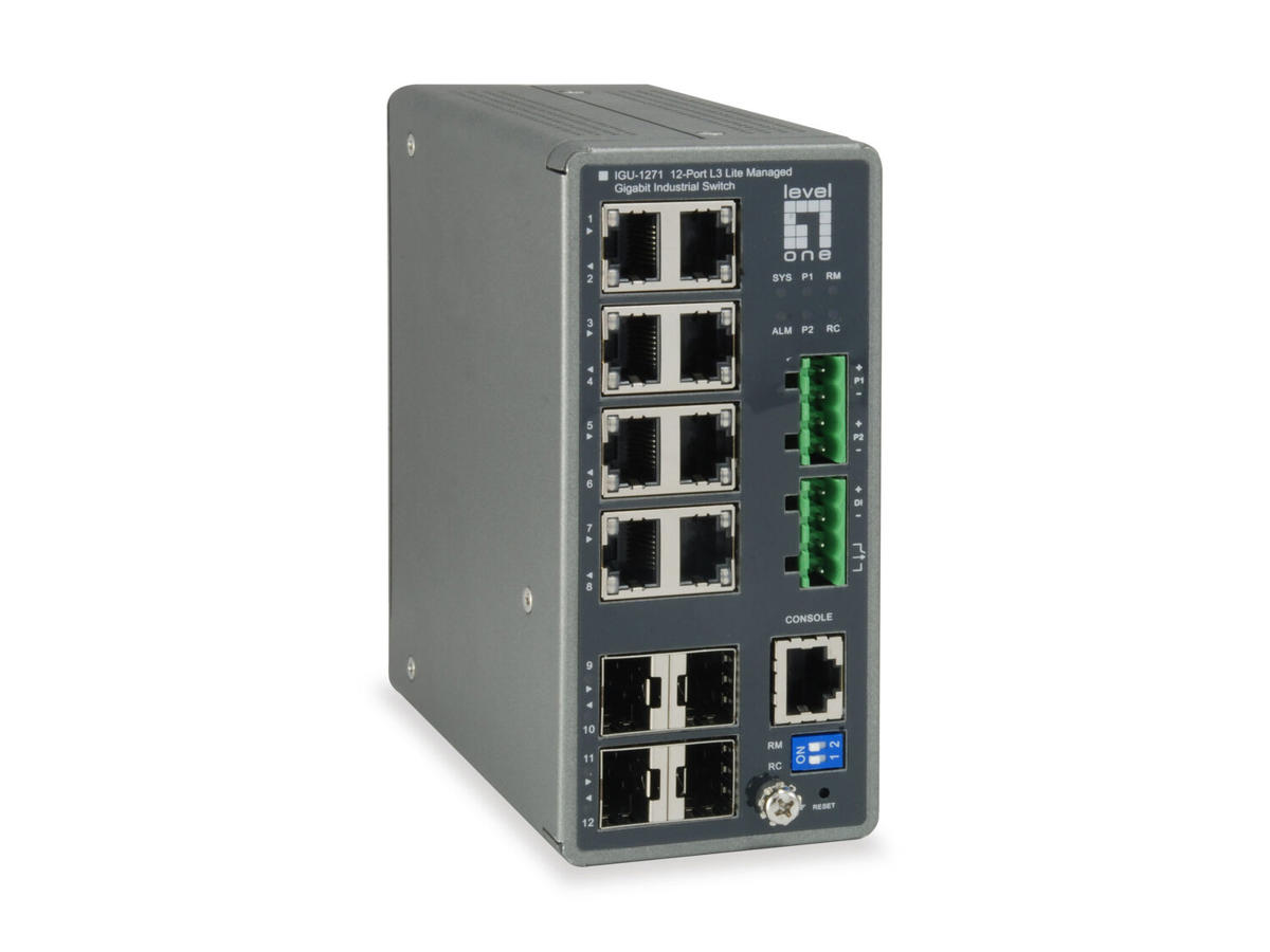 The LevelOne IGU-1271, a L3 Lite Managed Industrial Switch with 8 ports of Gigaibit RJ45 and 4 ports of Gigabit SFP. This switch is offering full suite of L2 management features, including advanced L3 features such as Static Route that delivers better cost performance and lower total cost of ownership in enterprise networks via fiber or copper connections.