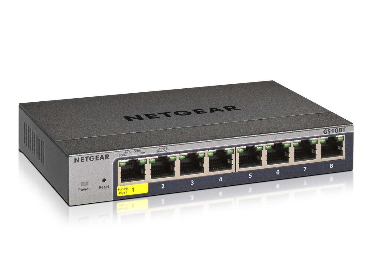 The NETGEAR GS108Tv3 8-Port Gigabit Smart Managed Pro Switch with Cloud Management is fanless, supporting perfectly silent desktop operation or wall mounting. The GS108Tv3 Smart Managed Pro Switch offers an easy-to-use, Web browser-based management GUI with configurable L2 network features like VLANs and QoS for wireless converged networks and mobility. This switch also comes with NETGEAR Insight Cloud management activation (free for the first two devices) for anytime remote management and monitoring through an intuitive app or Cloud Portal. Advanced features such as IPv4 Layer 2+ static routing,IPv6 management, ACL, DiffServ QoS, LACP link aggregation and Spanning Tree will satisfy even the most advanced small business networks. The GS108Tv3 features Energy Efficient Ethernet (IEEE 802.3az) for maximum power savings and is backed by NETGEAR ProSAFE Limited Lifetime Warranty and 24/7 support including lifetime chat.