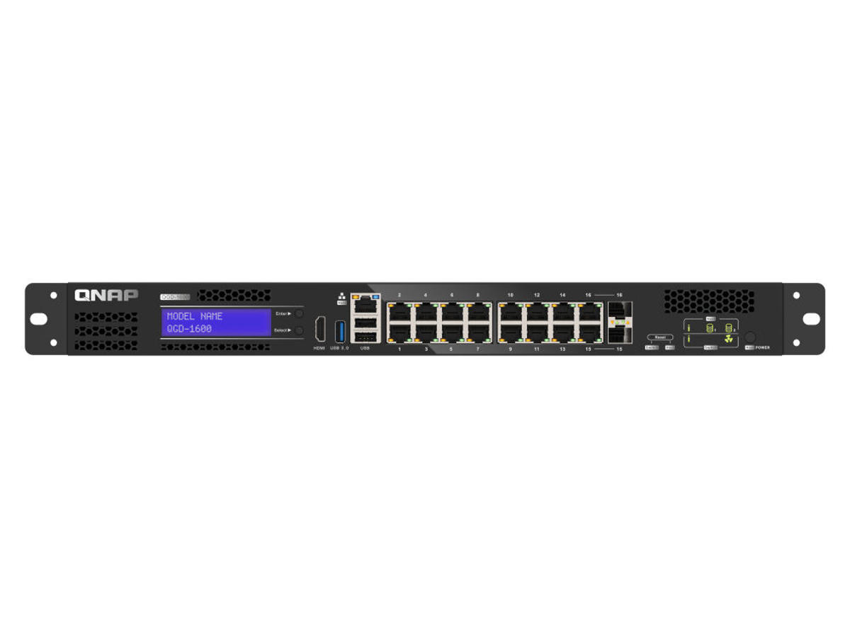 QNAP’s QGD-1600 is the world’s first managed switch that supports Virtual Machines (VMs). It features multiple Gigabit ports for highly flexible networking environment deployment. With a dual-CPU design, the QGD-1600 provides both Layer 2 management functions for VM and QTS applications. The QGD-1600 also features Software-Defined Networking (SDN), enabling it to function as a NAS, NVR, router and firewall for IP surveillance, network security and storage expansion applications. Therefore, the QGD series offers SMBs a cost-optimized and centrally managed LAN deployment solution.