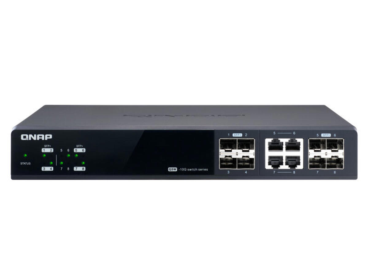 The QSW-M804-4C is a Layer 2 Web Managed Switch with four 10GbE SFP+ ports and four 10GbE SFP+/RJ45 combo ports that enables blazing-fast transfer speeds, simultaneous multi-workstation access to large files (ideal for video editing and multimedia), and empowers bandwidth-demanding tasks like virtualization. Supporting Layer 2 switching and providing a user-friendly entry-level network management solution, the QSW-M804-4C is an affordable way for businesses and organizations to fully embrace 10GbE connectivity.