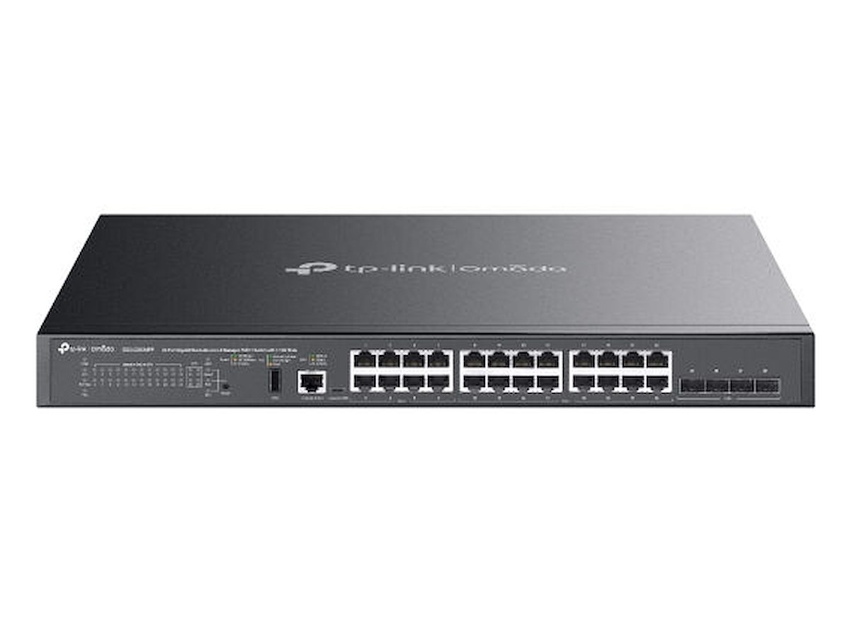 Omada SG5428XMPP is a dependable entry-level L3 managed PoE++ switch tailored for the access layer, featuring L3 routing, fast 10 Gbps wired speeds, and stacking options. It boasts a 500W PoE budget,* 24× gigabit RJ45 ports (8× PoE++, 16× PoE+), 4× 10 Gbps SFP+ slots, physical stacking ability, and centralized management. Integrated with strong security and extensive management features, the SG5428XMPP offers a reliable networking solution for SMEs, and ISPs.