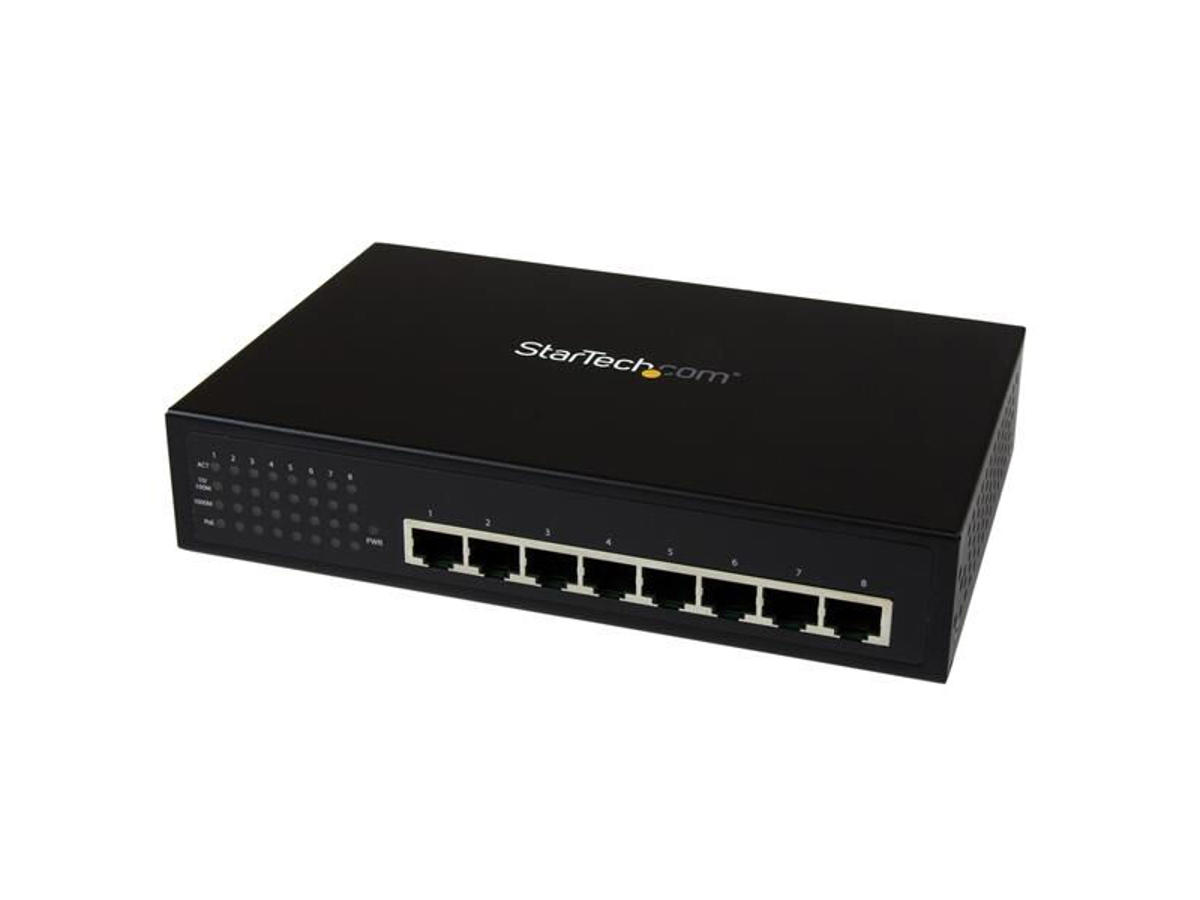 A true unmanaged switching solution, the 8 PSE (Power Sourcing Equipment) ports sense whether the connected devices are PoE-ready or require data connectivity only, and also auto-negotiate between 10/100/1000 Mbps network speed and duplex.
