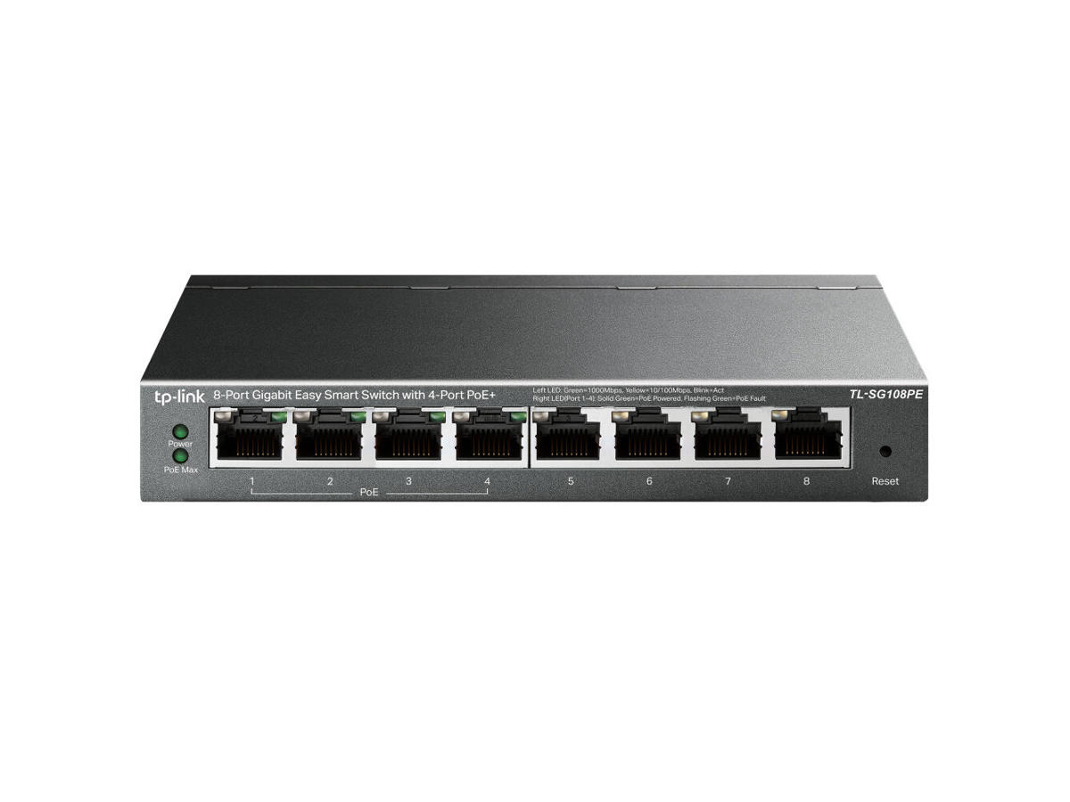 he TL-SG108PE is an 8-port Gigabit Easy Smart Switch with 4 PoE ports, represents a powerful upgrade from an unmanaged switch. It is designed specically for small businesses that require simple network management and PoE function. The TL-SG108PE can connect and power up to four PoE devices, such as wireless access points (APs), IP cameras, and IP phones. Through its web-based user interface and management utility, the TL-SG108PE offers a variety of useful features, including network monitoring, trafc prioritization, and enhanced QoS. Additionally, with port-based, tag-based and MTU VLAN, TL-SG108PE can improve security and meet more network segmentation requirements.