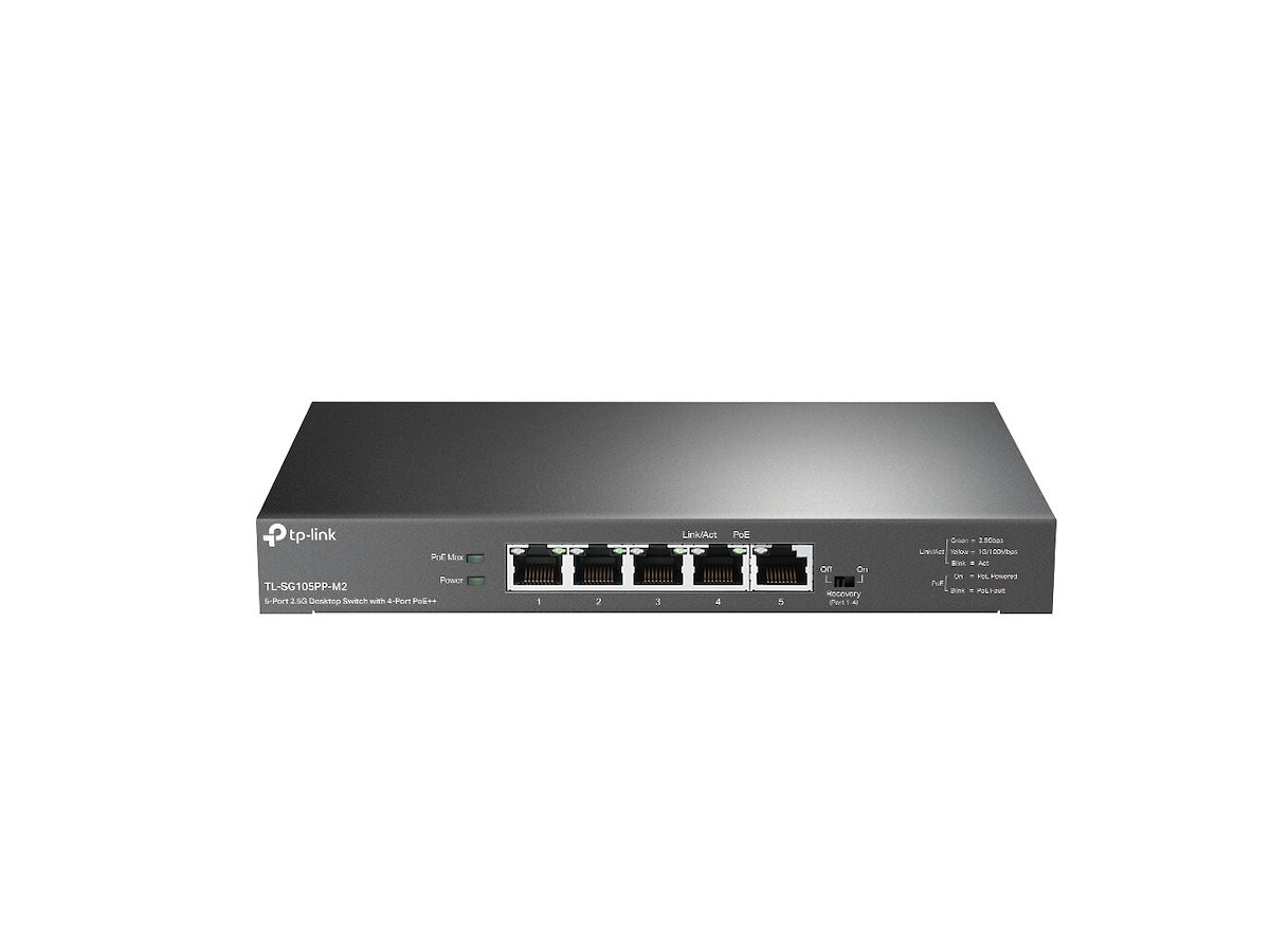 TL-SG105PP-M2 is easy to install and use. It requires no configuration and installation. With desktop and wall mountable design, outstanding performance and quality, the TP-Link 5-Port 2.5G Desktop Switch with 4-Port PoE++ TL-SG105PP-M2 is a great selection for expanding your network. -