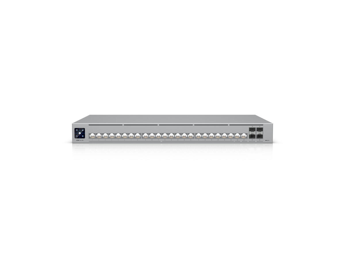 Professional-grade, Layer 3 Etherlighting™ switch with (2) 10 GbE, (22) 2.5 GbE, and (4) 10G SFP+ ports.