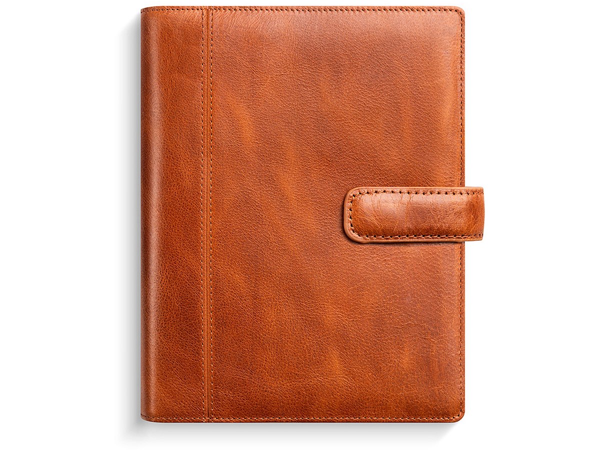 Lille og overskuelig systemkalender. Du får et flot kalenderomslag i ægte, brunt skind, som giver kalenderen et eksklusivt udseende. Kalenderen har en 16 mm. ringmekanisme med 6 ringe og en hulafstand på 19-19-19-19-19 mm. Omslaget kan bruges igen og igen, år efter år, og holdes lukket med en fin lukkestrop. Kalenderomslaget har desuden en pencilholder, kreditkortkommer, møntrum og lommer til løse papirer, så kalenderen er altså mere end blot en kalender. Selve kalenderen er inddelt med en uge pr. opslag, og der er masser af skriveplads til at notere ugens planer og aktiviteter. Dertil finder du en udfoldelig årsoversigt samt en informationsdel.