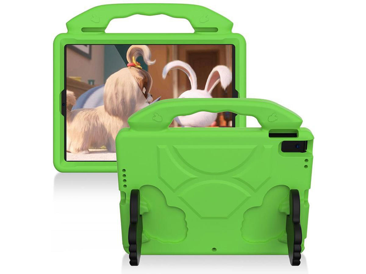 • Shockproof cover designed for kids with a soft outer shell made from non-toxic, flexible EVA foam and and a solid inner shell offering an effective protection. The small hands on the back serves as a kickstand. The built-in handle is a must have for kids as it makes it easy to carry the tablet