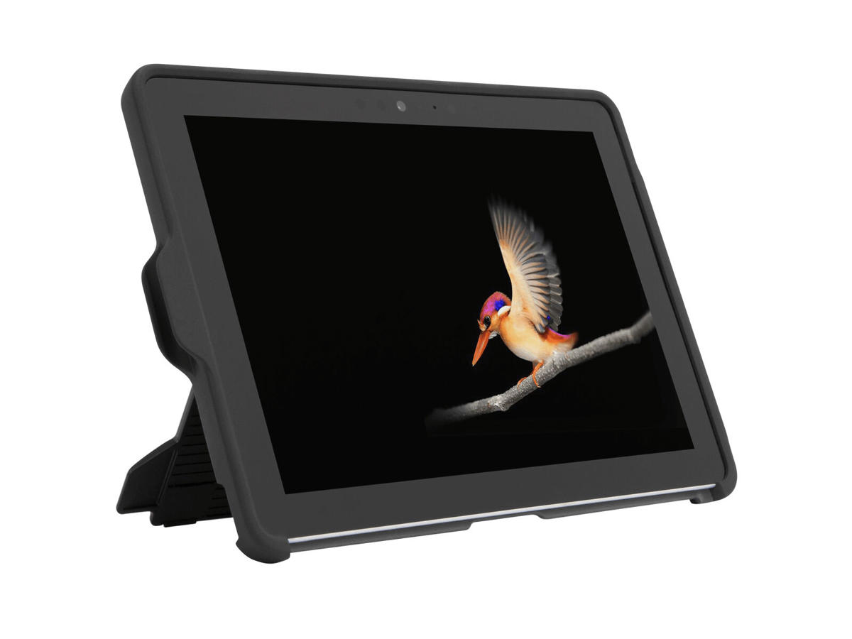 Lightweight and strong the Targus Protect Case keeps your Microsoft Surface Go protected. From its hardened polycarbonate shell with shock-absorbing materials to advanced corner and side protection, it meets the rigorous MIL-STD-810G standards that protect from sudden drops and accidental slips. With an integrated stand it easily transitions through virtually infinite viewing and typing positions. And, precision cut holes enable you to access all the ports and camera without taking off the case. -