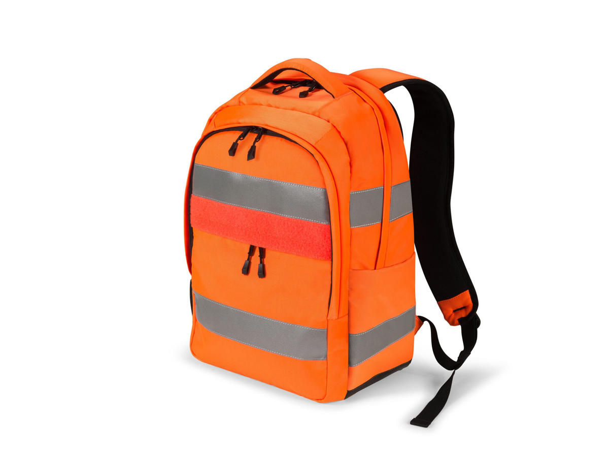 With its high-visibility backpacks, DICOTA offers a reliable solution for challenging work days outdoors. All products meet important procurement criteria, including ergonomics, durability and sustainability. The highest level of quality and functionality meets sustainable materials made from recycled PET bottles -protecting both employees and the environment. The use of fluorescent fabrics and 3M reflective strips in line with EN ISO 20471:2013 means the backpacks offer excellent visibility, thus improving safety at work in outdoor areas like construction sites and forests and for rescue operations as well as on the way to work. The outer material is water-repellent, certified under EN ISO 4920, Level 4, and the rain cover supplied provides additional protection for heavy downpours. The air-flow system on the back guarantees pleasant air circulation when temperatures rise. The adjustable hip and chest straps ensure comfortable weight distribution and the best ergonomics. The 25 litres of storage space can efficiently store work accessories as well as personal items. The notebook is fully protected with the tried-and-tested fit-all system. There are also compartments for tablet, smartphone, power bank, torch, etc., as well as universal zipped compartments. Valuables can be safely stored in the compartment on the back to prevent theft. A business card pocket and the Velcro area on the back allow you to personalise the backpack with a name or logo patch. The backpack Hi-Vis 25 litres offers maximum space, comfort and visibility and is perfect for a demanding day working outdoors. It also improves safety at work while helping to prevent accidents. -