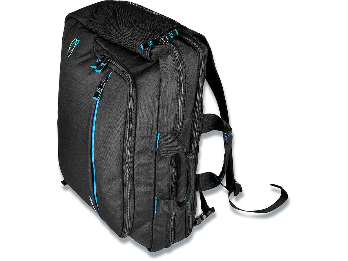 Skulderremstaske, håndtaske eller rygsæk? Du vælger selv! Stilfuld moderne 15,6” hybridtaske. Miljøvenlig - lavet af genanvendte plastflasker. Velegnet til beskyttelse og transport af bærbar computer, iPad og tablet. Polstret håndtag og aftagelig skulderrem til komfortabel bæring. Derudover to skulderremme, så tasken også kan bruges som rygsæk. Udvendigt mesh lomme til drikkeflaske. Nyttig vognrem. Stilfuldt moderne sort design med blå detaljer og foring.