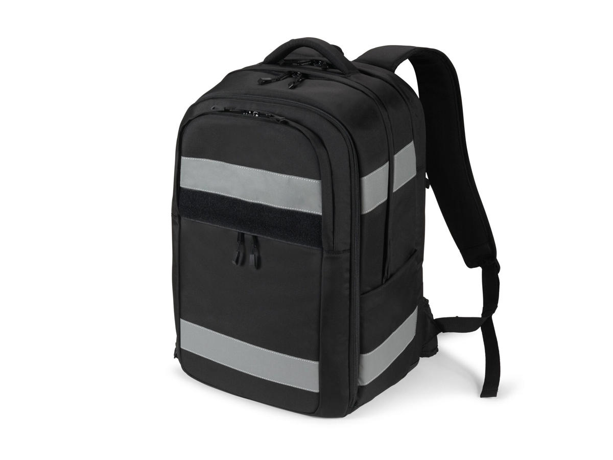 With its high-visibility backpacks, DICOTA offers a reliable solution for challenging work days outdoors. All products meet important procurement criteria, including ergonomics, durability and sustainability. The highest level of quality and functionality meets sustainable materials made from recycled PET bottles -protecting both employees and the environment. The use of fluorescent fabrics and 3M reflective strips in line with EN ISO 20471:2013 means the backpacks offer excellent visibility, thus improving safety at work in outdoor areas like construction sites and forests and for rescue operations as well as on the way to work. The outer material is water-repellent, certified under EN ISO 4920, Level 4, and the rain cover supplied provides additional protection for heavy downpours. The air-flow system on the back guarantees pleasant air circulation when temperatures rise. The adjustable hip and chest straps ensure comfortable weight distribution and the best ergonomics. With plenty of storage space, the backpack is perfectly designed for outdoor use. It can be expanded from 32 to 38 litres, so offers plenty of room for a change of clothes or work clothes. These can be stored separately from the rest of the contents. The notebook is fully protected with the tried-and-tested fit-all system. There are also compartments for tablet, smartphone, power bank, torch, etc., as well as universal zipped compartments. Valuables can be safely stored in the compartment on the back to prevent theft. A business card pocket and the Velcro area on the back allow you to personalise the backpack with a name or logo patch. The backpack REFLECTIVE 32 -38 litres offers maximum space, comfort and visibility and is perfect for a demanding day working outdoors. It also improves safety at work while helping to prevent accidents.