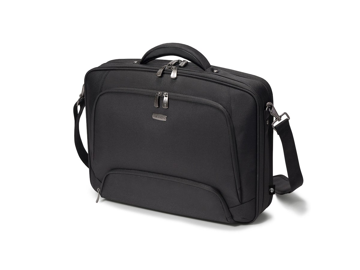 Play it safe with Eco Multi PRO! The clamshell bag reliably accompanies you everywhere and meets the highest standards of quality, functionality and protection. The fitall system with integrated grip strap and padded separators fixes your 11-14.1" notebook and safety brings it to your destination. The sealable notebook pocket, the High-Density Foam (HDF) padding and the frame reinforced with metal ensure all-round protection. The padded compartment for a tablet up to 12.9" protects against impact and is equipped with extra-soft Nylex inside. Generous storage space for your documents and mobile accessories. Two extra document compartments at the back. The front pocket with key fob and insert pockets allows you to organise your personal equipment. Long-lasting wearing comfort thanks to comfortable and riveted handles, adjustable, padded shoulder strap and the practical trolley-fastening strap. The Eco Multi PRO is therefore perfect for you if you are always on the go and want to support the recycling of PET bottles with an eco-friendly case.