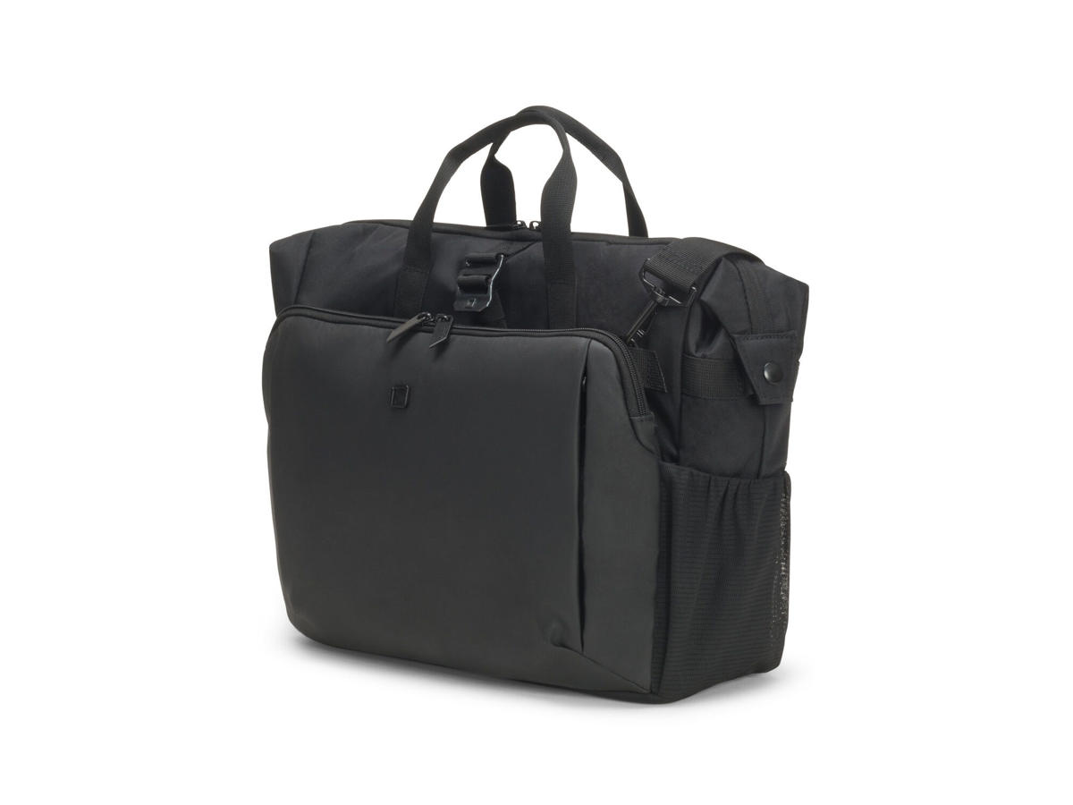 The Eco Top Traveller GO offers ideal protection for laptops. The fitall system separating wall in the notebook compartment lies protectively across your notebook and fits automatically to sizes from 13 to 15.6". The slip pocket provides reliable protection for tablets up to 12.9". The spacious main section is divided so that documents and accessories can be stored separately. Open expandable compartment for active gear such as sport shoes, helmet, yoga mat, etc. including elastic mesh side pockets and metal hook for fixation. The front pocket has practical compartments so you can organise mobile accessories like smartphone, pens or chargers. There is a document compartment at the back for easy storage of documents. Carry the bag comfortably with the handles or use the adjustable, padded shoulder strap. The bag is made of water-repellent material to protect the contents even on rainy days. The Eco Top Traveller GO is therefore perfect for you if you are always on the go and want to support the recycling of PET bottles with an eco-friendly bag.
