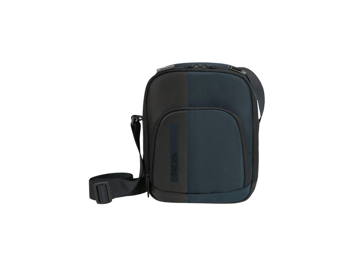 Samsonite BIZ2GO. Anbefalet køn: Mand, Håndtaske/skuldertaske type: Skuldertaske, Lukketype: Lynlås. Produktets hovedfarve: Blå, Farvelægning: Monokromatisk, Rem, farve: Sort. Materiale: Polyester. Volumen: 4 L, Bredde: 200 mm, Dybde: 90 mm