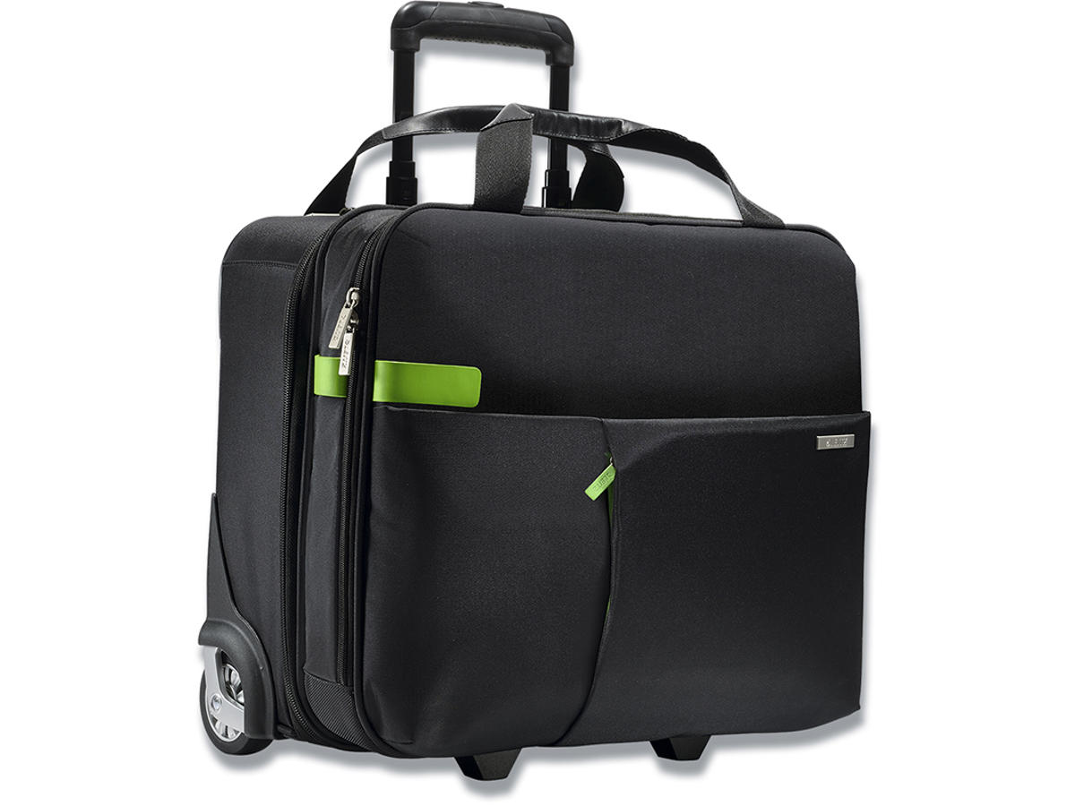 Kvalitets, letvægts business trolley i kabinestørrelse med 2 rummelige hovedrum og mindre frontrum. Giver klar adskillelse mellem arbejdsudstyr og privattøj. Komfortabel at rejse med med 2 letrullende inline hjul (system ABEC3) og multijusterbart håndtag med dobbeltrør, eller bær med læder bærehåndtag eller fikser den på en anden lufthavnstrolley. Kan kombineres med alle andre tasker i Leitz Complete serien.