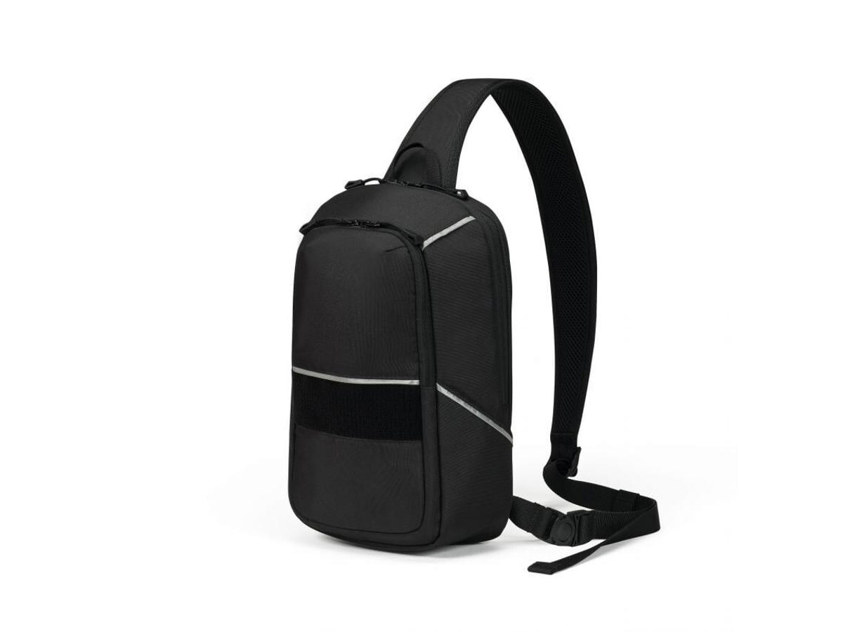 The Sling Bag REFLECTIVE has a large capacity to keep everything you need organised and within easy reach. The discreet reflective stripes on the bag increase visibility in poor light conditions or darkness. For durability and protection of valuables, the sturdy sling bag is made from high quality materials. The intelligent compartmentalisation offers space for everything from tablets to personal items. The padded fit-all compartment protects tablets up to 12.9", while the hidden compartment made from antibacterial material on the back of the bag offers space for personal items and a face mask. The front compartment offers space for accessories such as a smartphone or power bank. The shoulder strap is adjustable in length and side for a personalised fit, while the practical carry handle ensures versatile handling. The outer fabric is water resistant according to EN ISO 4920, Level 4. Breathable padding on the back and shoulder ensures air circulation and carrying comfort. The velcro area allows the bag to be personalised with a name or logo patch.