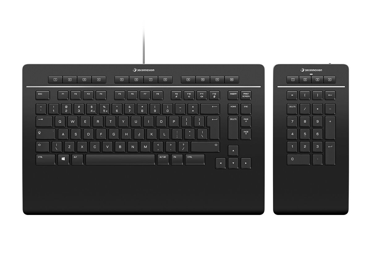 The 3Dconnexion Keyboard Pro with detached numpad is engineered to help you create digital 3D models and professional designs. Its compact width enables a better position of your mouse or pen resulting in a more natural and comfortable posture. Twelve programmable 3Dconnexion keys automatically provide access to app-specific commands you need most – saving time and keeping you focused.