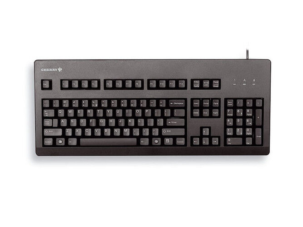 CHERRY G80-3000. Tastatur formfaktor: Fuld størrelse (100 %). Tastatur stil: Lige. Forbindelsesteknologi: Ledningsført, Enhedsgrænseflade: USB + PS/2, Antal taster på tastatur: 105. Kabellængde: 1,75 m. Anbefalet brug: Universel. Produktfarve: Sort