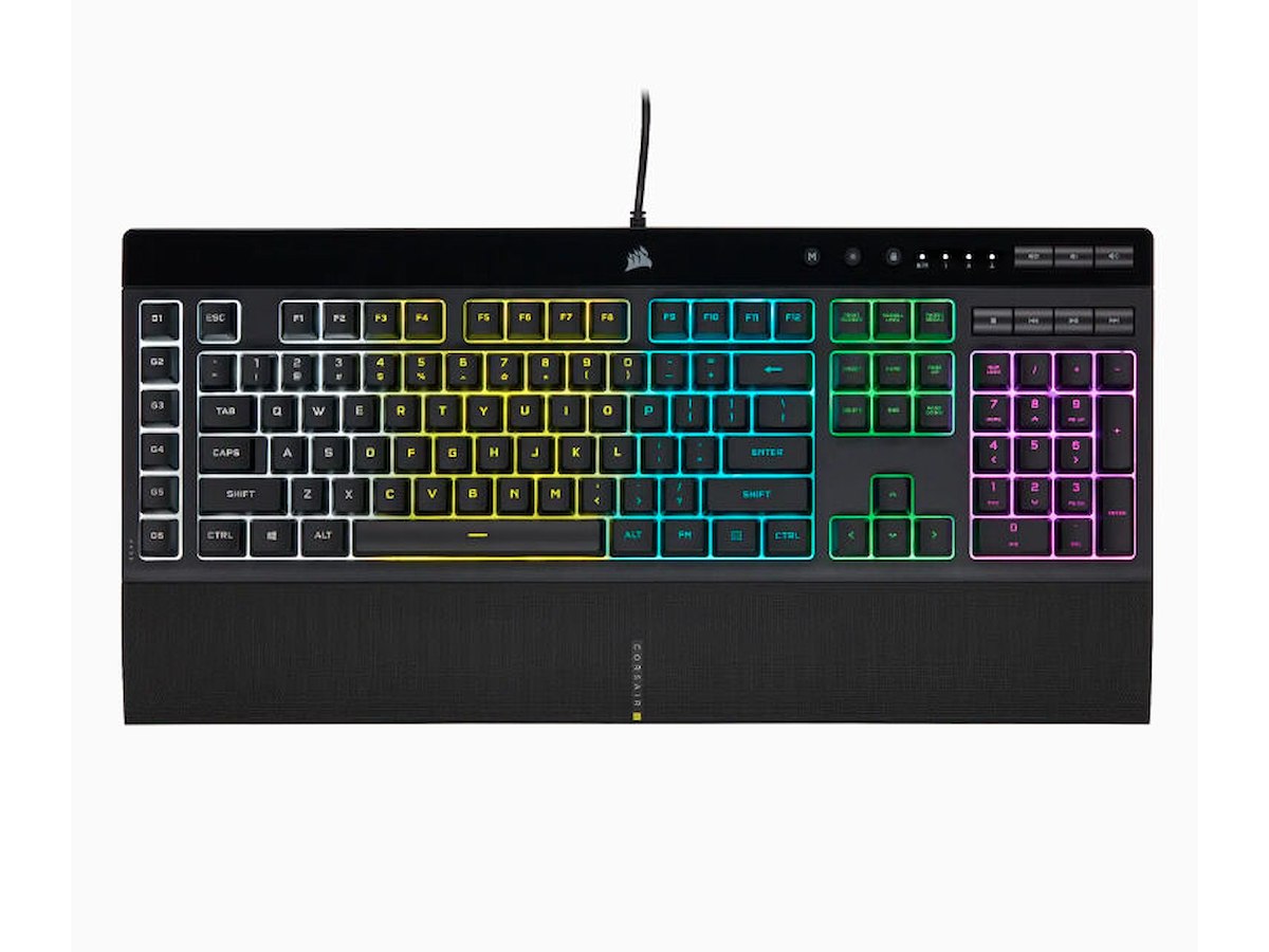 Corsair K55 RGB PRO. Tastatur formfaktor: Fuld størrelse (100 %), Forbindelsesteknologi: Ledningsført, Enhedsgrænseflade: USB, Tastaturopsætning: QWERTY, Antal taster på tastatur: 111. Type af baggrundslys: RGB LED, Håndledsstøtte. Anbefalet brug: Spil. Produktfarve: Sort