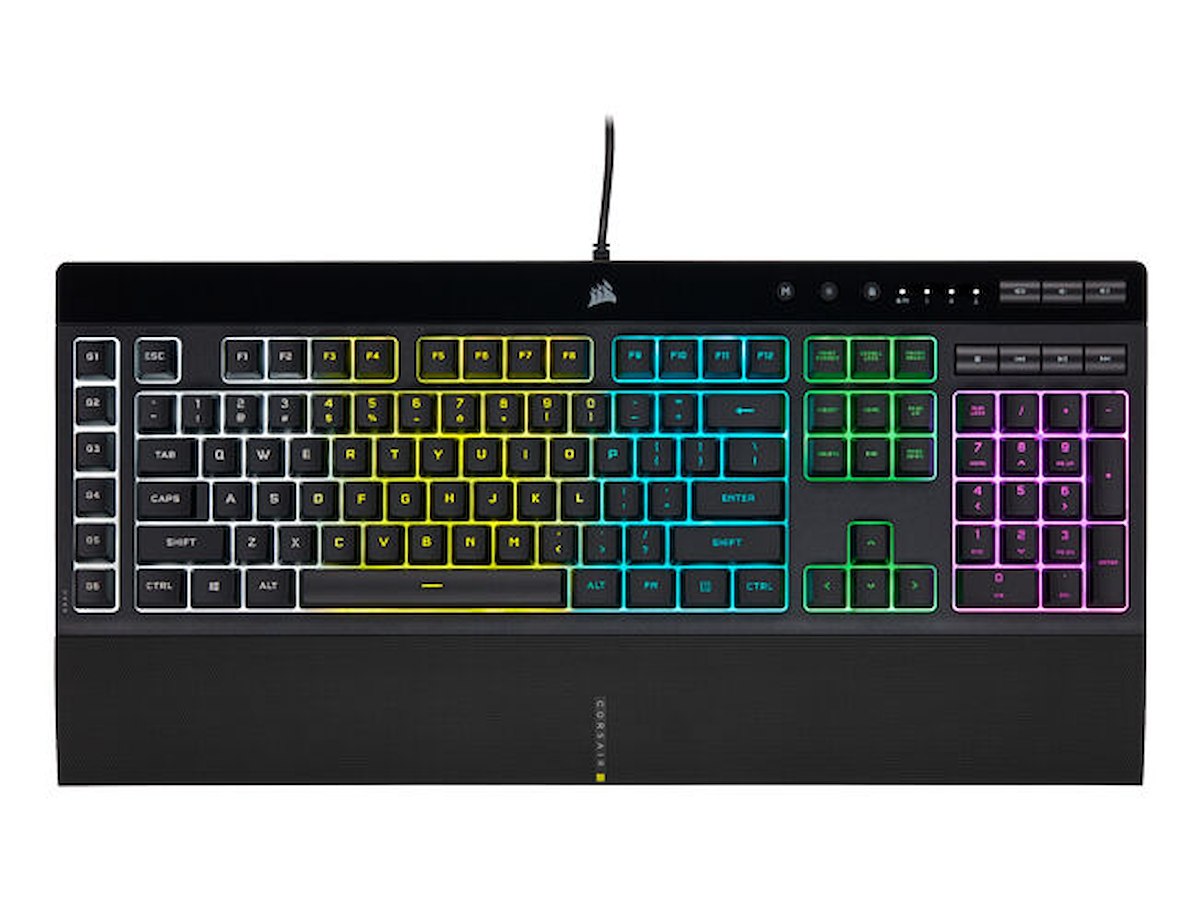 The CORSAIR K55 RGB PRO Gaming Keyboard lights up your desktop with five-zone dynamic RGB backlighting and powers up your gameplay with six dedicated macro keys.