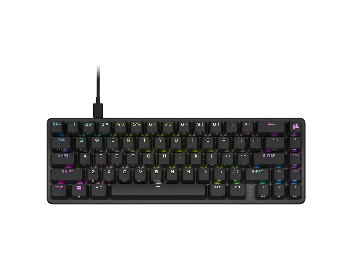 Corsair K65 PRO MINI. Tastatur formfaktor: 65%. Tastatur stil: Lige. Forbindelsesteknologi: Ledningsført, Enhedsgrænseflade: USB, Tastatur nøglekontakt: Optomekanisk nøglekontakt, Antal taster på tastatur: 68. Type af baggrundslys: RGB LED. Anbefalet brug: Spil. Produktfarve: Sort