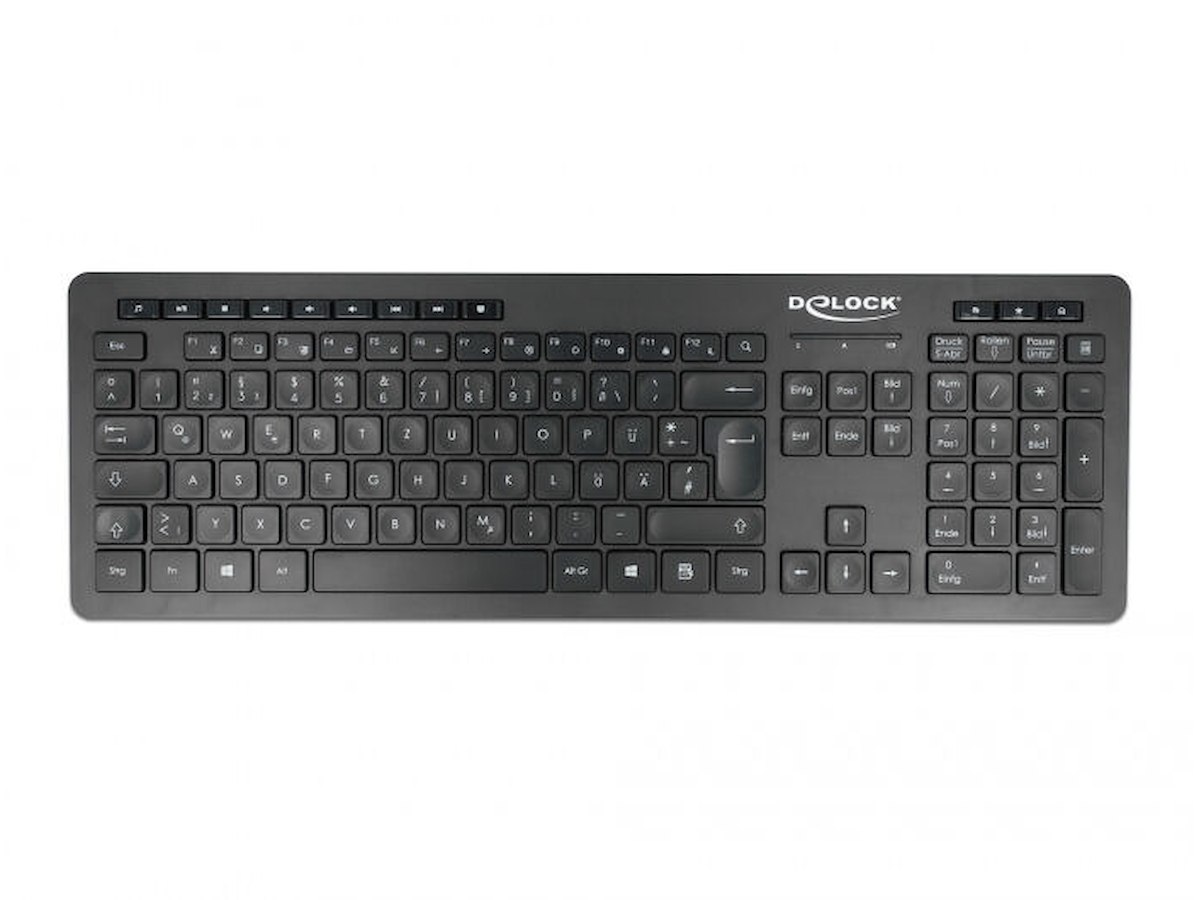 This wireless USB keyboard by Delock with different multimedia keys brings silence into every working environment. Whether e.g. in an open plan office or at home, the Delock keyboard supports, due to its silent keys, noiseless and pleasant working on the computer. Also the click feeling of this keyboard does not change, despite its reduced click sound.