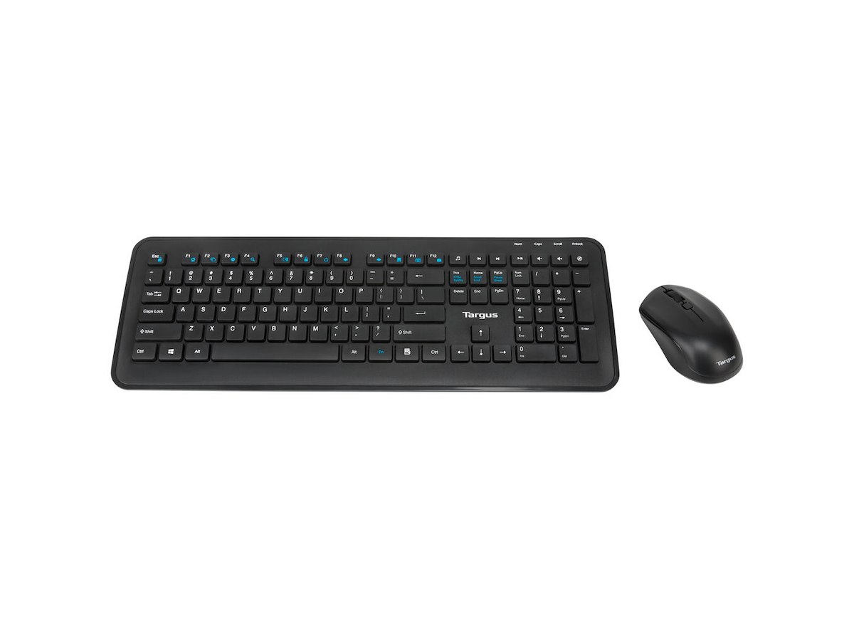 Targus AKM610ES. Tastatur formfaktor: Fuld størrelse (100 %), Forbindelsesteknologi: Trådløs, Enhedsgrænseflade: RF trådløst, Anbefalet brug: Universel. Produktfarve: Sort. Mus inkluderet