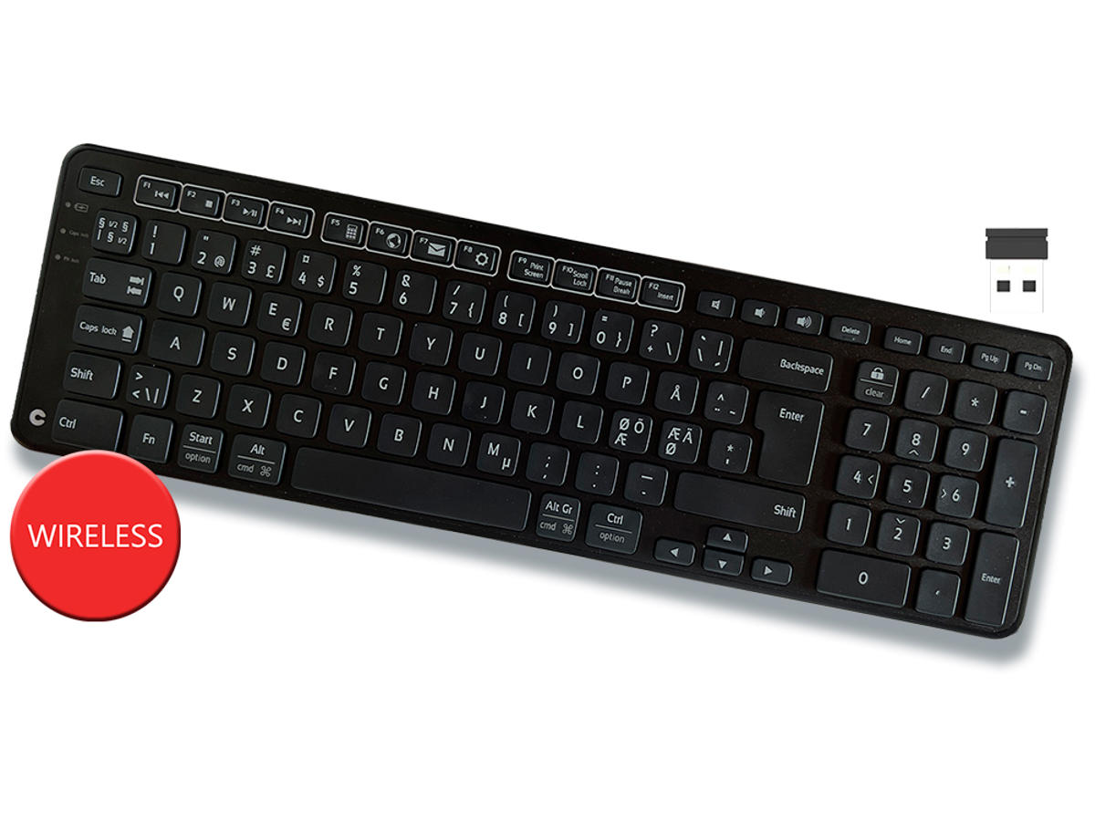 Tastaturet leveres med Windows taste-opsætning, men er også kompatibelt med MAC. Tastaturet er desuden udstyret med medietaster*, der gør det nemt at udføre nyttige dagligdagsopgaver så som at bruge lommeregner og sende e-mails. Traditionelle funktionstaster (F1-F12) er også tilgængelige, og med Fn lock-funktionen kan du aktivere dem, når du vil bruge dem.