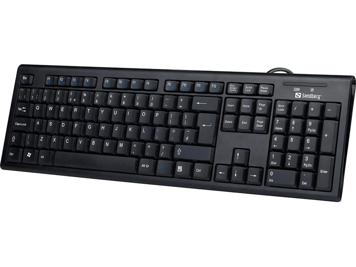 Sandberg USB Wired Office Keyboard er et rigtigt godt standard tastatur, der bare virker. Sæt blot tastaturet i en USB port i din computer, og det er klar til brug med det samme. Tastaturet får strøm fra computeren, så du skal aldrig bekymre dig om batteriskift, og sparer samtidig udgiften hertil.
