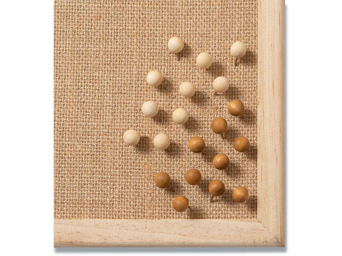 Træ pins / nåle, mørkt og lyst træ, 20 stk. Træ pins til opslagstavler i kork og hessian. Naturlige og moderne tegnestifter som bl.a. kan anvendes til ophængning af fotos og sedler på alle slags opslagstavler eller indrammede kort. Denne pakke med tegnestifter kommer med 10 stk i mørkt træ og 10 stk i lyst træ.