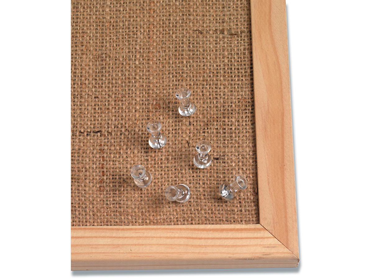 Pins i klart gennemsigtigt design, som egner sig godt til diverse opslagstavler. Anvend klare pins til at organisere og fremhæve vigtige noter på din hessian- eller kork opslagstavle.