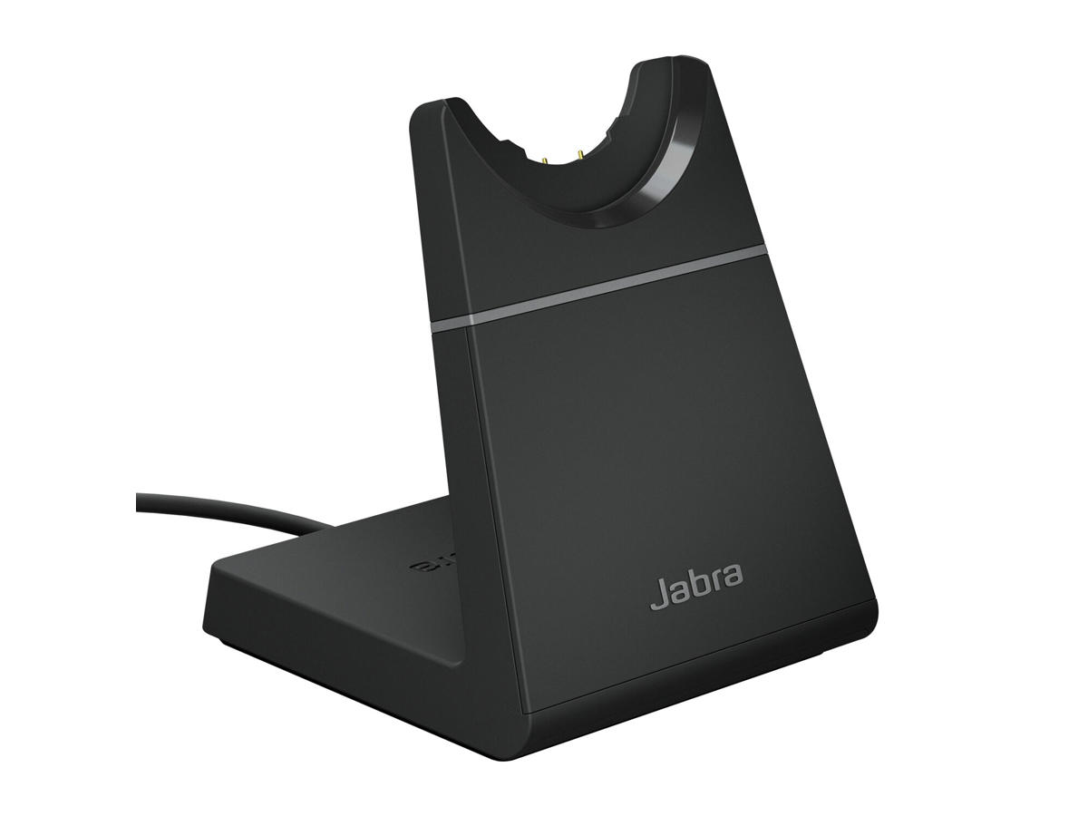 Opladningsstanderen giver dig mulighed for at oplade og opbevare dit Jabra Evolve2 65 på dit skrivebord på en nem og praktisk måde.