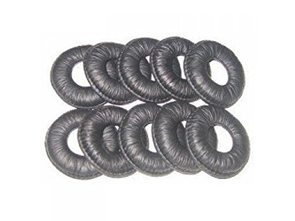Større ørepuder i læder til Jabra PRO 9400 (5,5 cm diameter). Disse større ørepuder, der fås som tilbehør, giver 3-5 dB mere passiv støjdæmpning end standardørepuden og tilbyder forbedret komfort.