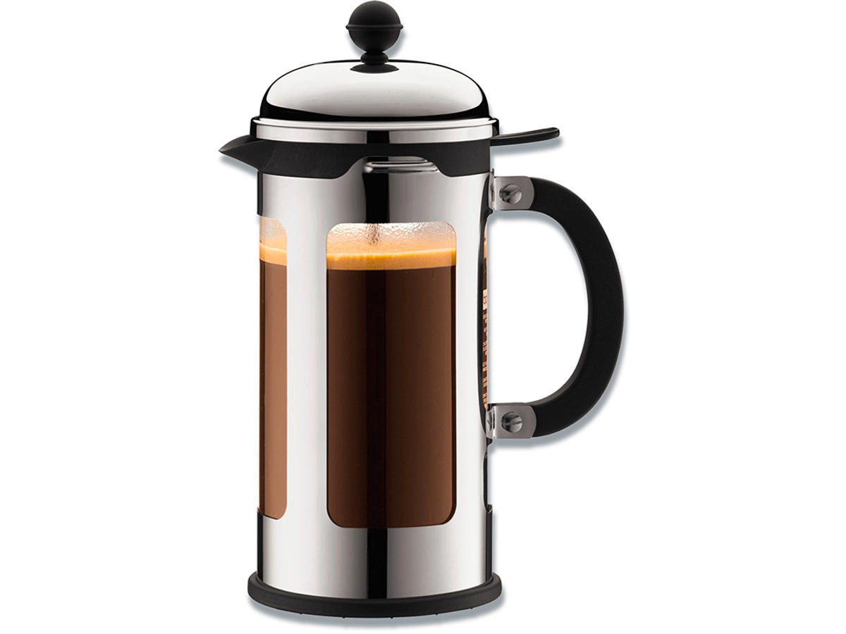 Stempelkande Bodum glas/chrom 1L 8 kopper